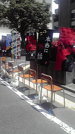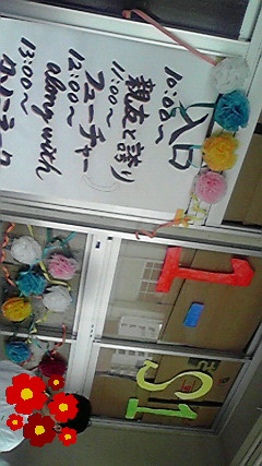 校門入ってすぐに各クラスののぼりが 立ててありました。旗ね。