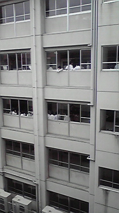 校門入ってすぐに各クラスののぼりが 立ててありました。旗ね。